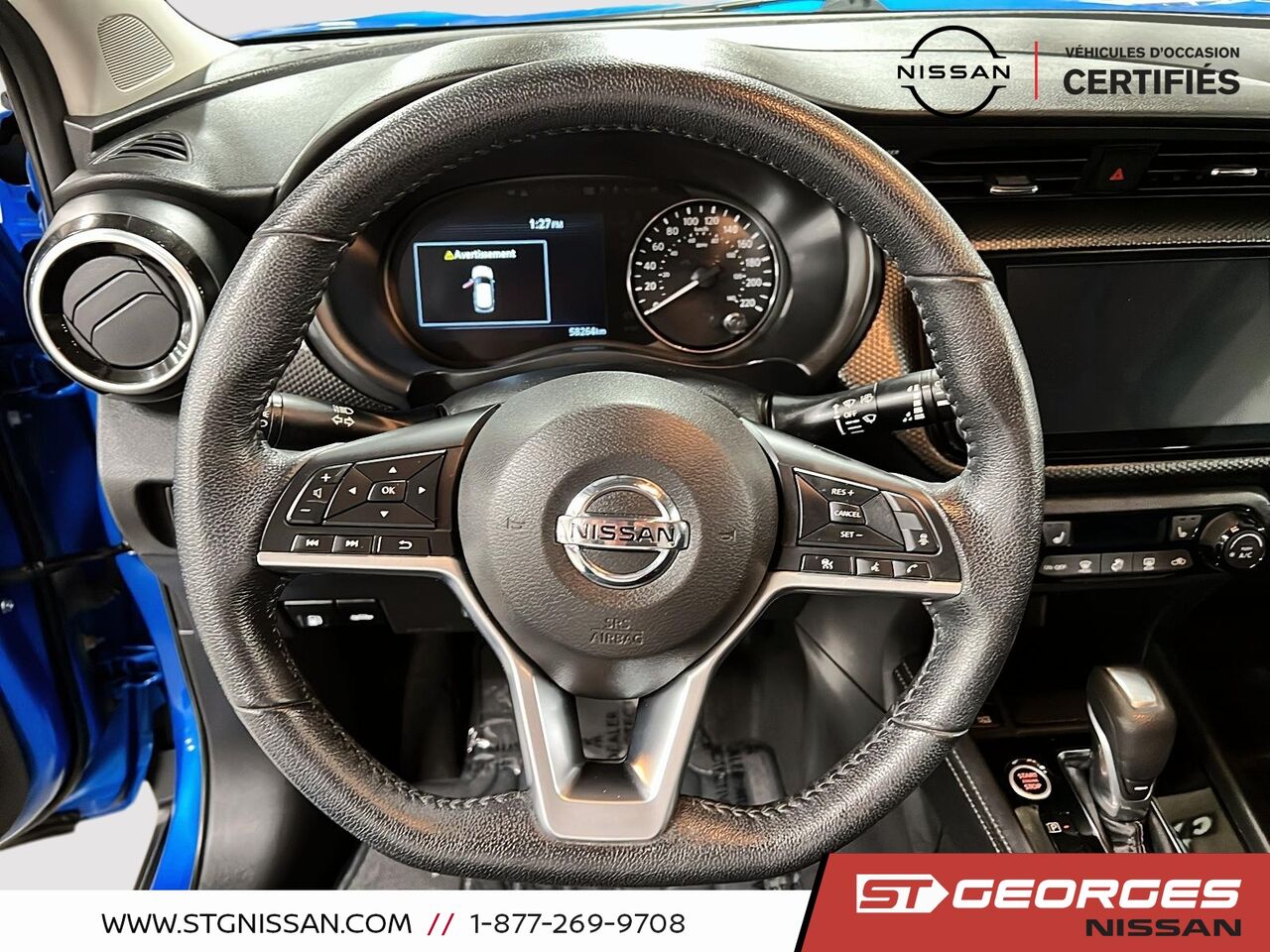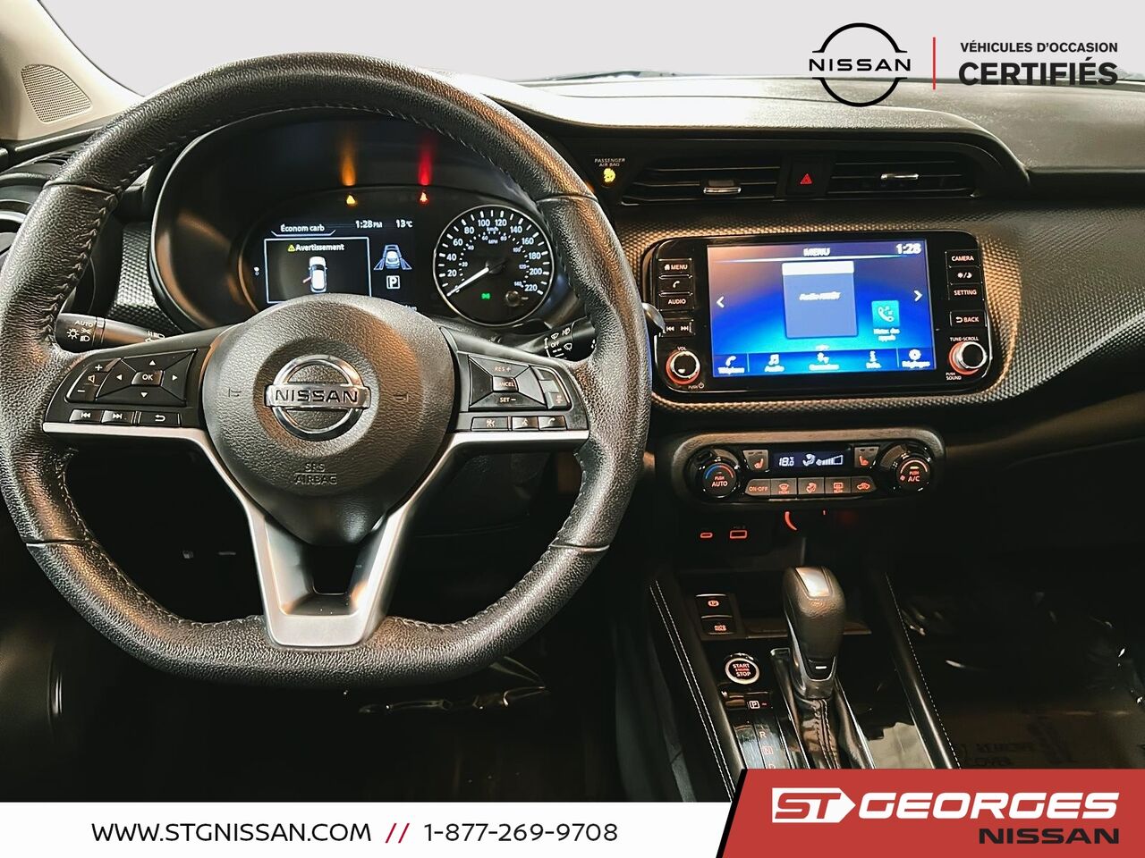 Ce Kicks est équipé de nombreuses options de sécurité et de confort, telles que la surveillance des angles morts et le système intelligent de freinage d'urgence, assurant une tranquillité d'esprit lors de vos trajets. Profitez également de la climatisation automatique et du volant sport chauffant en cuir pour un confort optimal en toutes saisons.