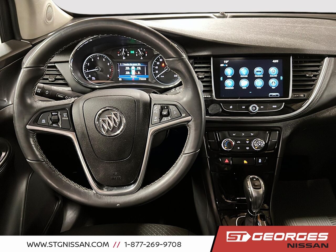 Découvrez ce Buick Encore 2019 Privilégiée 4 portes TI, un VUS d'occasion en excellent état avec seulement 42 203 km au compteur. Doté d'une transmission intégrale, ce véhicule est idéal pour affronter les routes du Québec en toute confiance. Son moteur à 4 cylindres et sa transmission automatique à 6 vitesses offrent une conduite fluide et agréable. L'intérieur noir est équipé de fonctionnalités modernes telles qu'un système Bluetooth pour téléphone et musique, des commandes audio et de téléphone au volant, ainsi qu'un climatiseur à commande manuelle monozone. Le véhicule propose également des sièges confortables, avec un siège conducteur à réglage électrique en 6 directions. En matière de sécurité, cet Encore est bien équipé avec des sacs gonflables frontaux et latéraux, une caméra arrière, et un système de surveillance de la pression des pneus. De plus, il bénéficie de la technologie QuietTuning de Buick pour un habitacle silencieux. Ce Buick Encore est couvert par une garantie motopropulseur jusqu'à 1 mois ou 1 700 km, et la garantie d'origine est valide jusqu'au 14 décembre 2023 ou 100 000 km. Pour plus d'informations, contactez-nous chez St-Georges Nissan au (418) 228-9708 ou visitez-nous au 9130 Bd Lacroix, Saint-Georges.